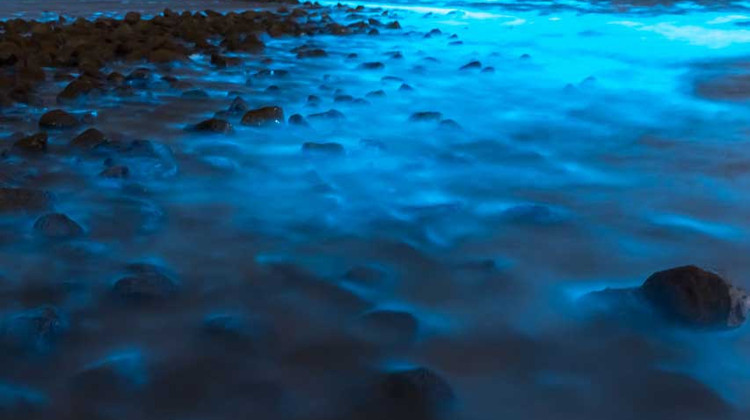 晚饭后,追泪团队勘测到蓝眼泪出现地点后,前往酒店接您到海边追泪