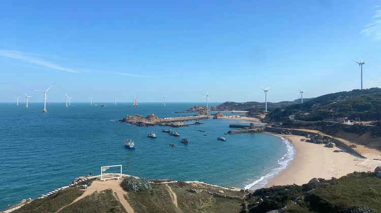 长江澳沙滩是平潭三大海滨沙滩之一,沙质细白。拥有福建较大规模的风力发电田,一座座风车排列得错落有致,碧海风车和蓝天白云,美不胜收。