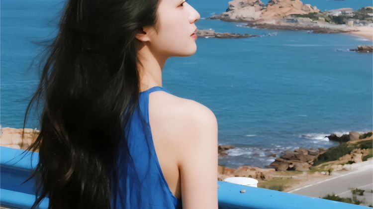 目光专注凝视着海峡对岸,
